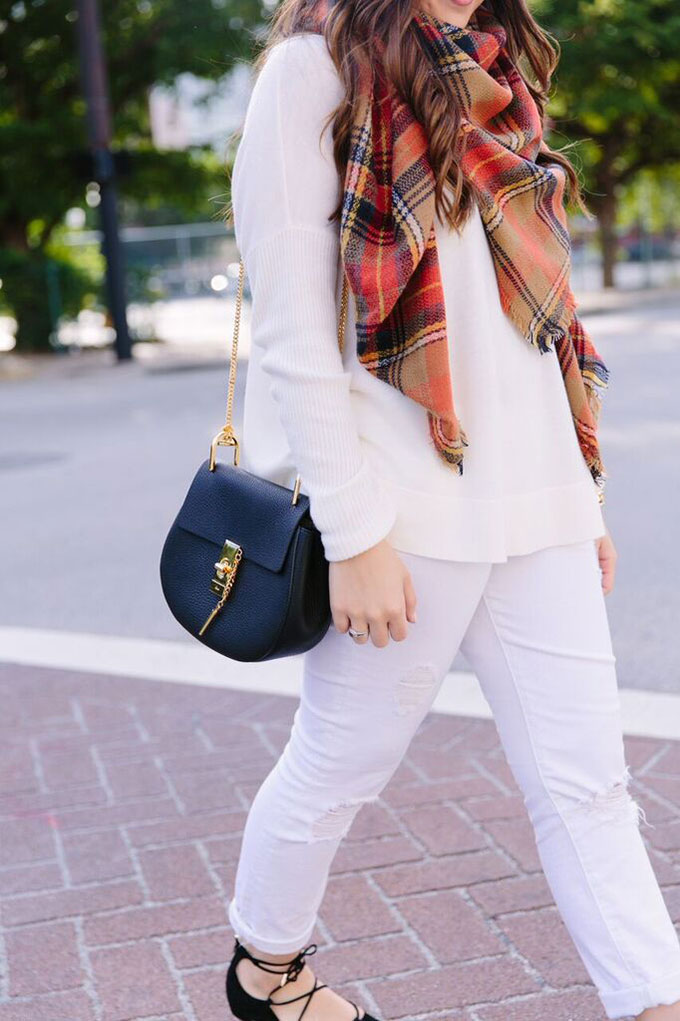 I’m currently taking a break from studying to write today’s (technically it’s tomorrow’s but since I’m writing this on Wednesday but it’s going live Thursday I say today..??) post but I wanted to share with you my absolute favorite white boyfriend jeans! I’ve had such difficulty finding white boyfriend jeans I love but these are great. They’re comfortable, flattering and so soft. I’ve been wearing them on repeat lately! I can’t wait to wear them with wedges closer to spring. Also, these flats are sold out but I found an extremely similar version here for under $100!