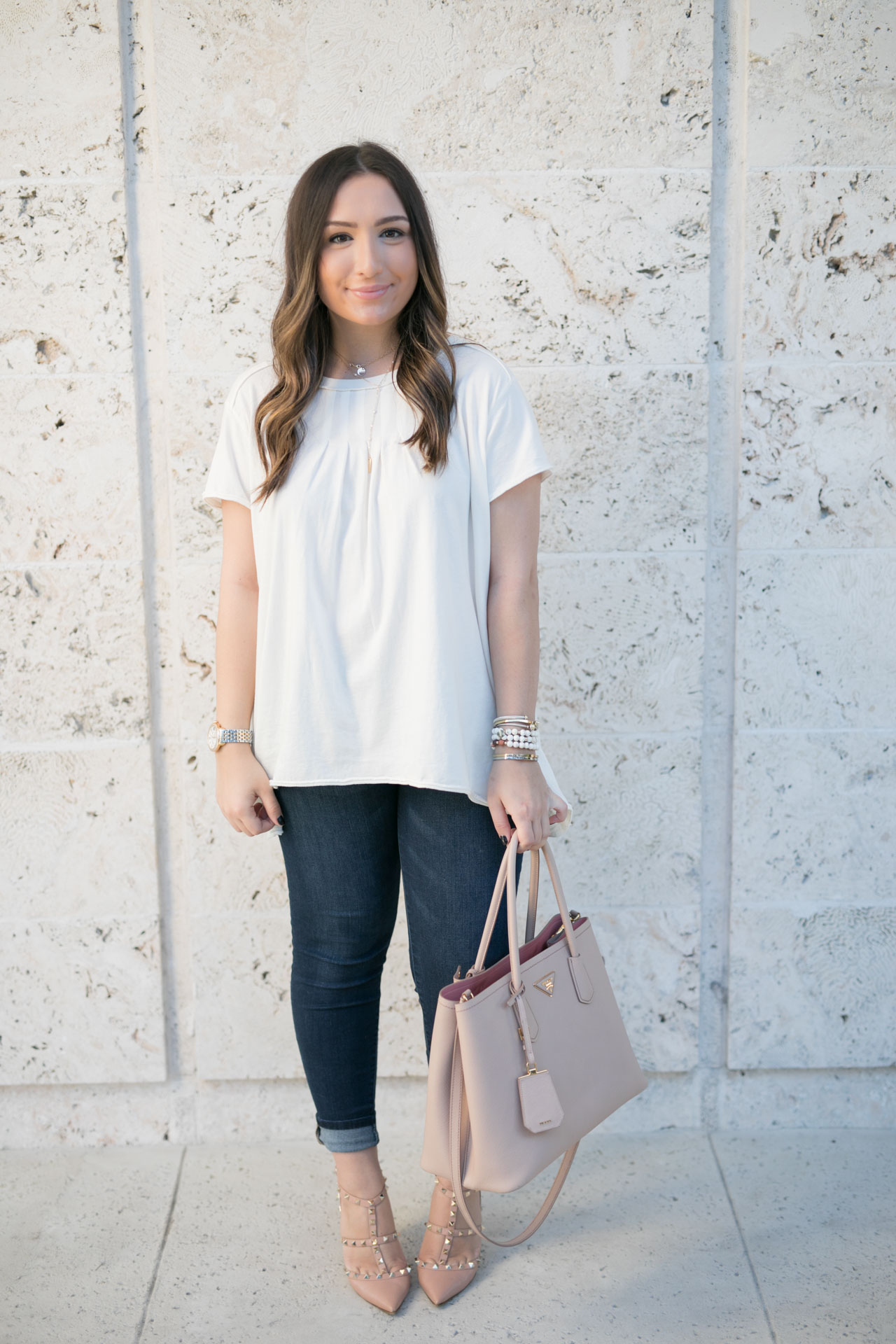 Happy Thursday! I finally made it to New York and am so happy to be back. Just to update you, I’ll be here until after my birthday (January 6). I think I’m going to work on a blog post that’s a bit more personal explaining everything that’s going on in my personal life but for now I wanted to share this adorable high low tee that you know I have been obsessing over! I wore this exact outfit (minus the Valentino shoes) to my nephew’s first birthday and the shirt was a hit. It’s just one of those casual tees that you can dress up (as shown here) or dress down with sandals. It’s also extremely comfortable and I love the fit of it.