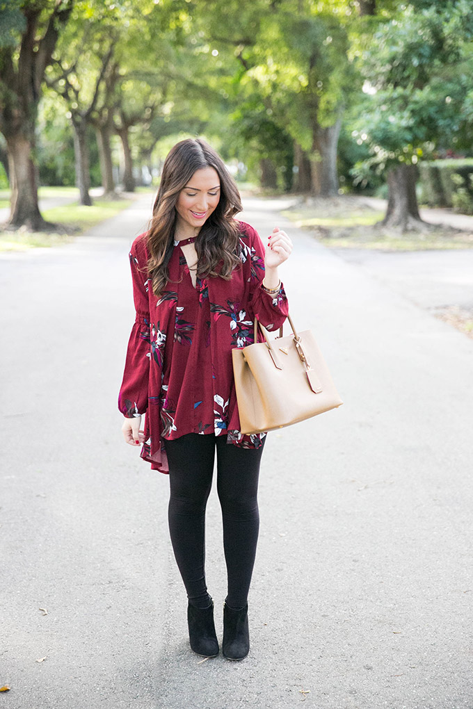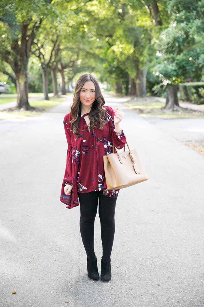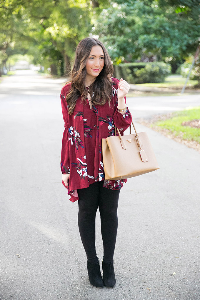 Wine is one of my favorite colors, so it’s no surprise that this wine tunic has stolen my heart! It’s so comfortable and is exactly like a designer top but a fraction of the price. It’s so flowy and can be worn with leggings, jeans, anything really! I also love how flattering it is and the open detailing in the front.